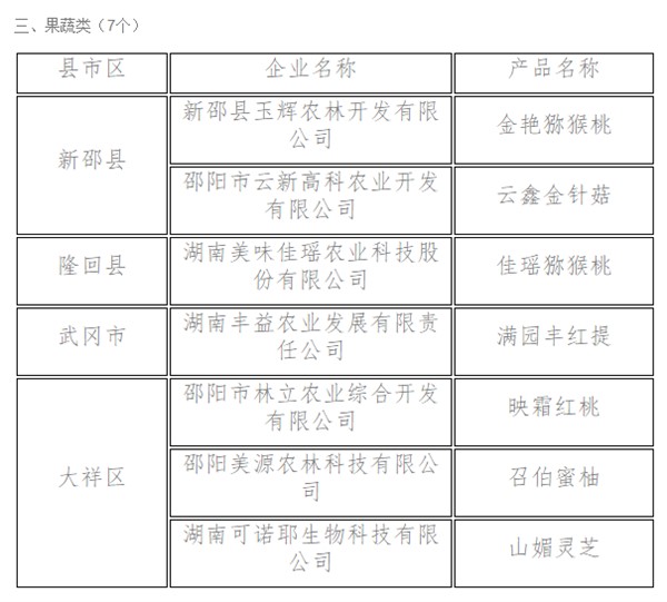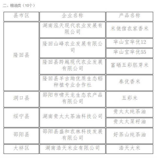 “邵陽紅”優質農產品名錄(第一批)(37個,排名不分先后)
